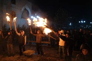Piştî ku daxuyanî bi dawî bû ciwanan meşale vêxistin. Daxuyanî bi berzkirina dirûşmeya “Jin Jiyan Azadî” bi dawî bû.