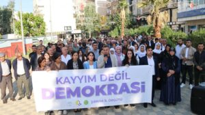 Platforma Saziyên Demokratîk a Mêrdînê li Parka Karayollariyê ya navçeya Artûklûyê bi tevlibûna endam û rêveberên partiyên siyasî û saziyên civaka sivîl daxuyanî da. Di daxuyaniyê de pankarta, “Ne qeyim ne darbeyên siyasî, gel wê serbikeve” hat vekirin.