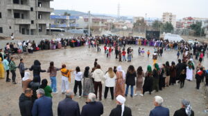 Piştî daxuyaniyê, jinan bi stranên Kurdî govend gerandin.