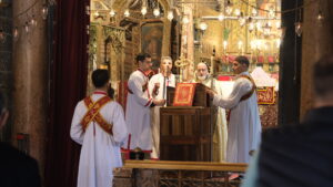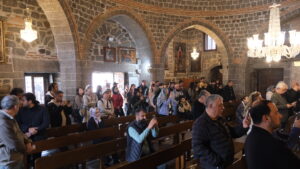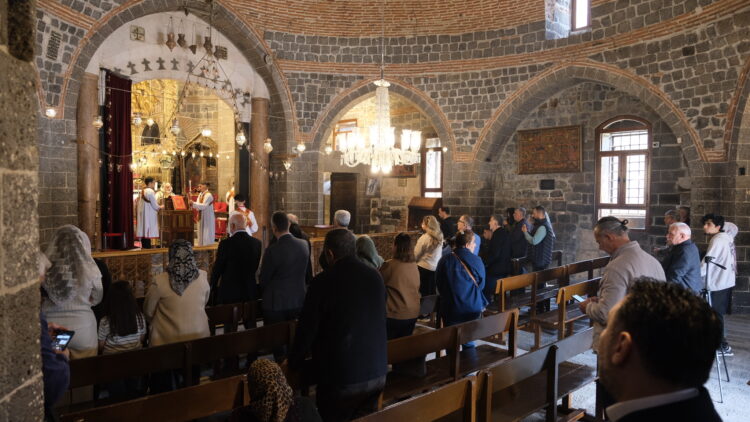 Di bin banê dîrokî yê Dêra Dayîka Meryemê de, bi zimanê Suryankî duayên olî hatin kirin û îlahî hatin xwendin. Di merasîma ku bi mûman hat ronîkirin de, bi boneya vejîna Îsa Mesîh sirûdên olî hatin gotin û daxwazên xêrê hatin kirin.