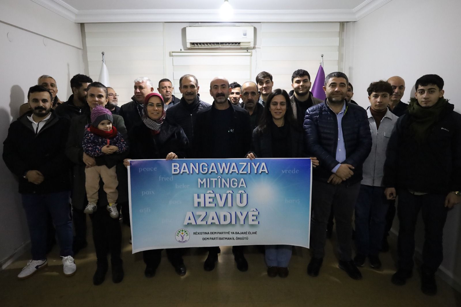 Partiya Wekhevî û Demokratîk a Gelan (DEM Partî) a Êlihê têkildarî mitînga “Hêvî û Azadiyê” ya ku dê di 4ê Çileya 2026an de li Qada Îstasyonê ya navçeya Bajarê Nû ya Amedê bê lidarxistin de daxuyanî da. Nûnerên rêxistinên siyasî û civaka sivîl beşdarî daxuyaniyê bûn.