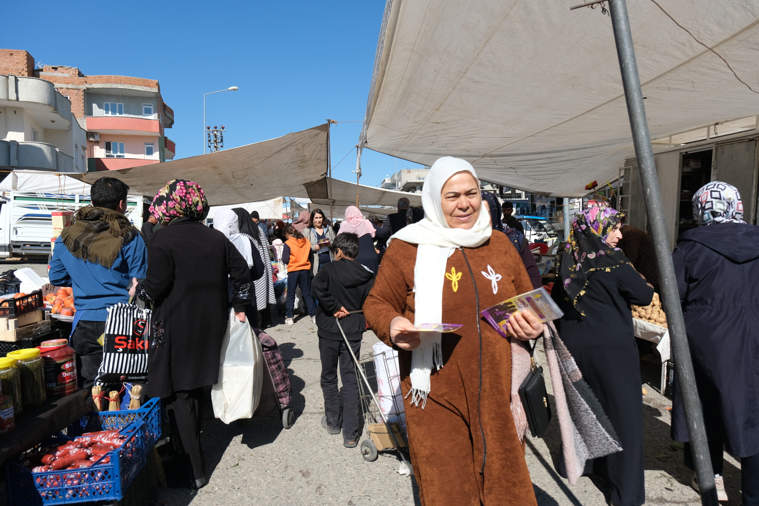 Aktîvîstên Tevgera Jinên Azad (TJA) têkildarî mitînga ku dê di çarçoveya 8ê Adarê Roja Jinan a Cîhanê de di 7ê Adarê de li Dortyolê ya li pêşiya avahiya DEM Partiyê bê lidarxistin belavok belav kirin. Jinên ku li gelek tax, tekstîl, park, kargeh û li nava bazaran geriyan banga tevlibûnê li jinan kirin. Jinan di heman demê de wênên ku keziyên hunandî li ser bi dîrekan ve kirin. Jin ji bilî tax, kargeh û bazaran çûn malan jî û jin vexwendin mitîngê.
