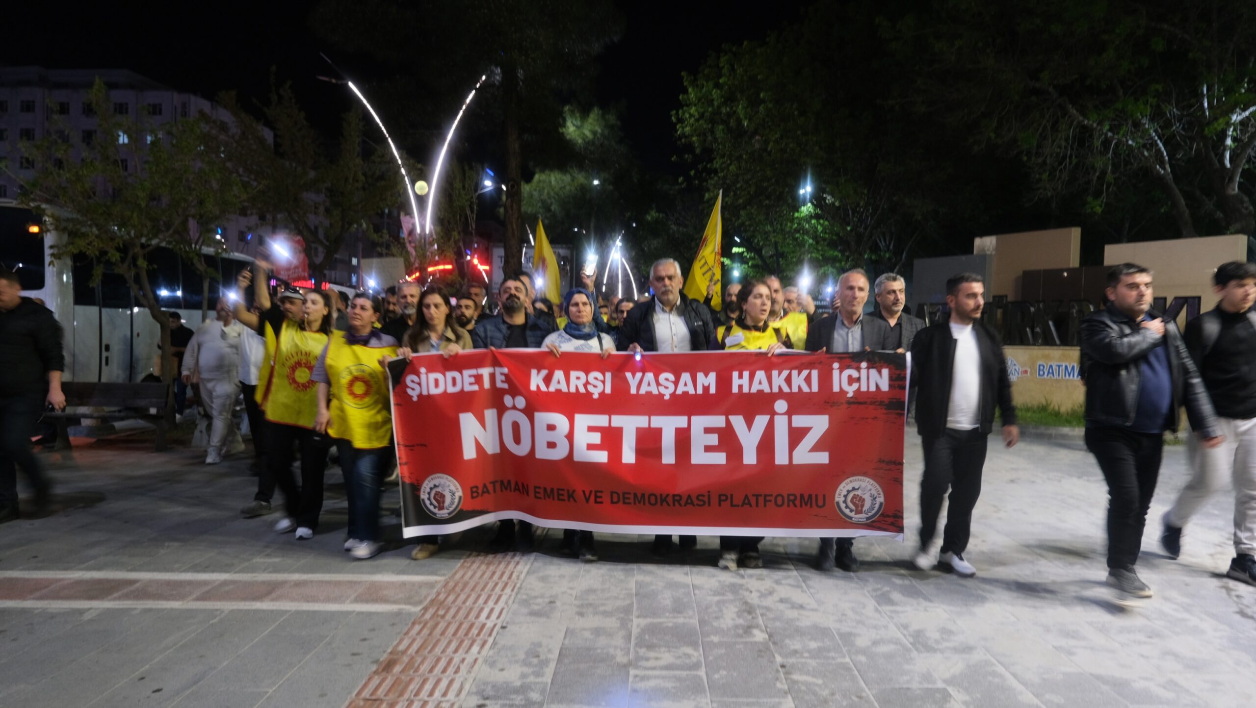 Bi pêşengiya Platforma Ked û Demokrasiyê yên Êlihê têkildarî kuştanên dawî yên ku dibistanan pêk tên li pêşiya avahiya AVMa BATMAN PARKê heta parka Yilmaz Guney meşiyan û piştî meşe jî daxuyanî dan çapemeneyê. Rêveber û endamên DEM Partî û DBPê yên Êlihê, hevşaredarên Êlihê Gulistan Sonuk û Yeşîl Işik, û gelek endamên saziyên civaka sivîl û gelek kes tev li çalakiyê bûn. Kesên ku tev li çalakiyê bûn bênavber dirûşmeyên “Yûsûf Tekîn îstîfa”, “Bêdeng nemîne, dê dor bê ser te jî” û “Êrişên dibistanan polîtîk in” hatin berzkirin. Girseyê pankarta “Li dijî tundiyê em nobeda mafê jiyanê digirin” û dowîzên ku li ser wan “Yûsûf Tekîn îstîfa”, “Rûmeta mamosteyê xwe biparêze”, “Ne ji cemaatan û terîqatan re ji perwerdehiyê re budçe” hatibûn nivîsandin hilgirtin.