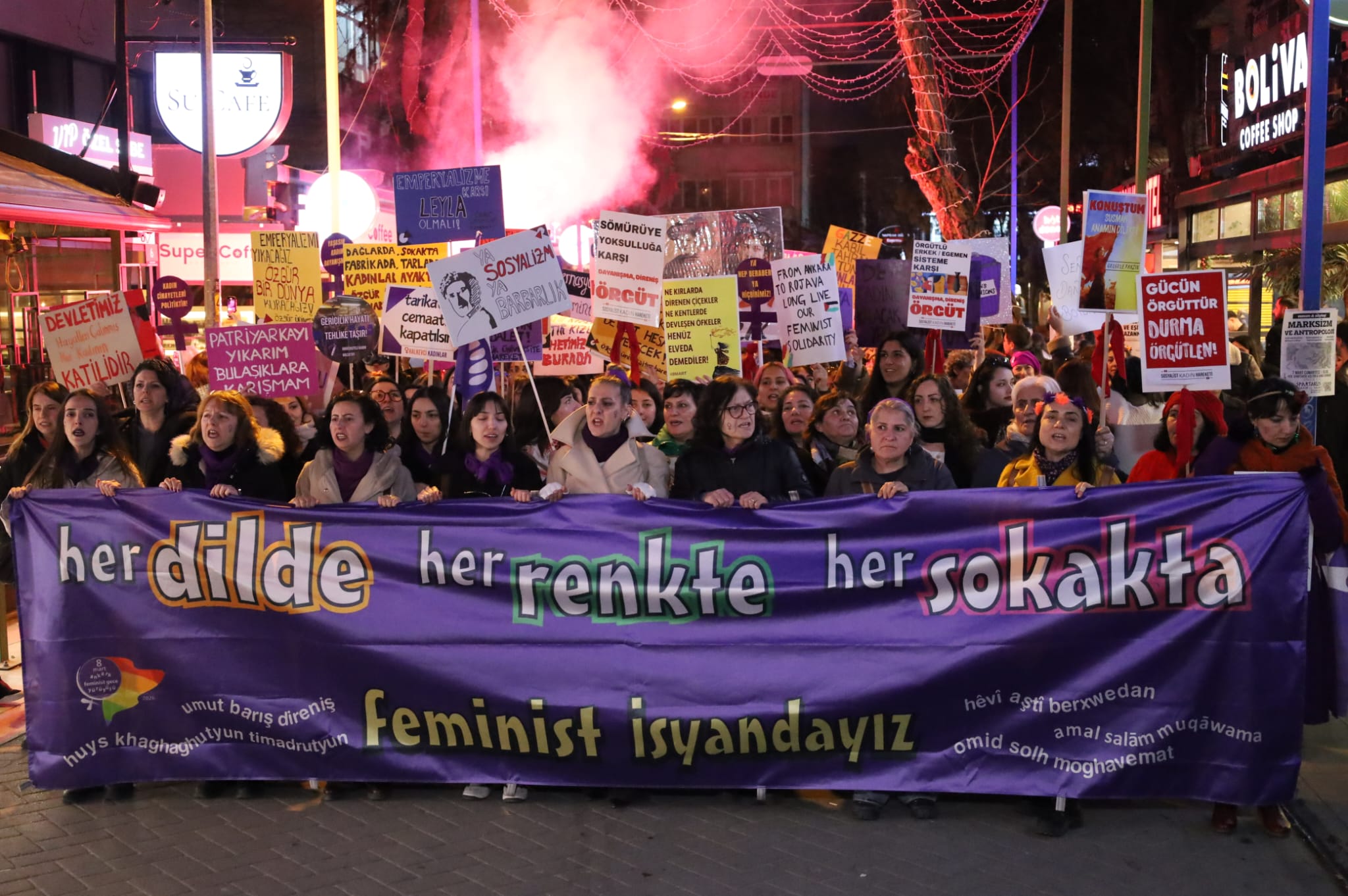 Saziyên jinan ên Enqereyê û Feminîstên Xweser bi minesebeta 8ê Adarê Roja Jinên Cîhanê ji bo 20emîn meşa şevê li Rêya Yuksel a navçeya Çankayayê hatin ba hev. Jinan li vir demekê dirêj dirûşmeyên, “Jin jiyan azadî”, “Raperîn şoreş û azadî” “Bijî têkoşîna me ya rêxistinkirî”, “Hevî aştî û berxwedan”, “Hezar silav ji jinên li Rojava li ber xwe didin”, “Hezar silav ji jinên li Filîstînê li ber xwe didin” û “Bi berxwedanê em ê bi derbikevin” berz kirin.