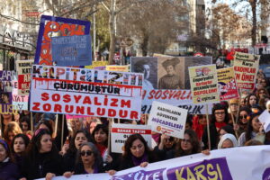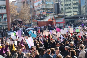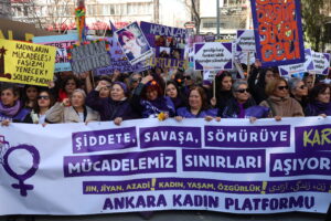 Bi pêşengiya Platforma Jinan a Enqereyê bi hezaran jin li Enqereyê meşiyan. Jinan di meşe de bertek nîşanî polîtikayên desthilata zilam dan û peyama, “Em ê pergala desthilata zilam biguherînin” hat dayîn.