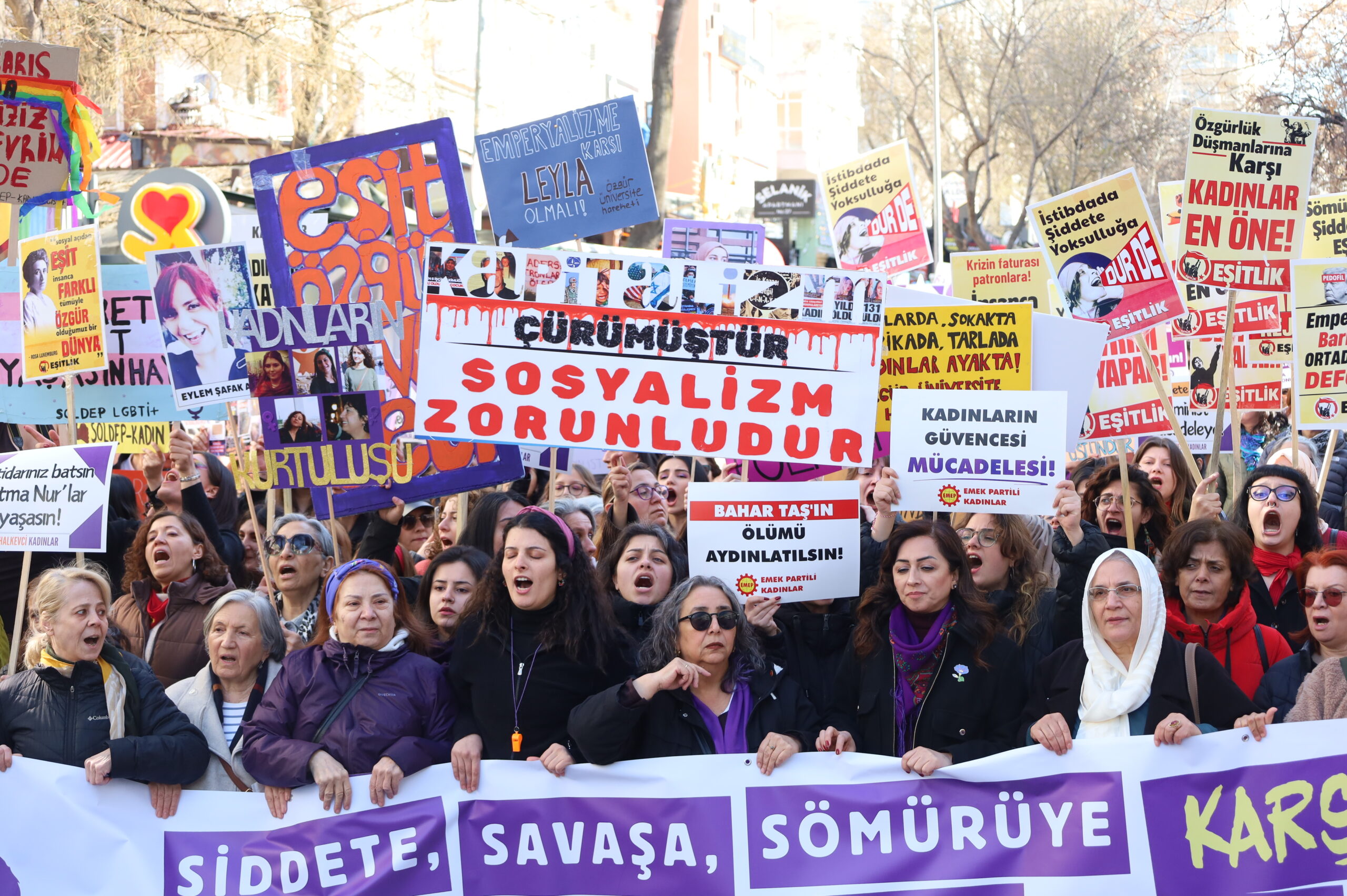 Bi pêşengiya Platforma Jinan a Enqereyê bi hezaran jin bi boneya 8ê Adarê Roja Jinan a Cîhanê li Cadeya Yukselê ya Enqereyê kom bûn. Jinan li vir pankarta “Li dijî tundî, şer û mêtingeriyê em sînorên têkoşînê derbas dikin” vekirin û bênavber dirûşmeyên, “Jin jiyan azadî”, “Em natirsin, bêdeng namînin û îtîat nakin”, “Bijî 8ê Adarê, bijî têkoşîna me ya rêxistinkirî”, “Kuştina jinan polîtîk e”, “Bijî piştevaniya jinan” û jinan li dijî kuştina jinan û desthilatiya zilam dengê xwe bilind kirin.