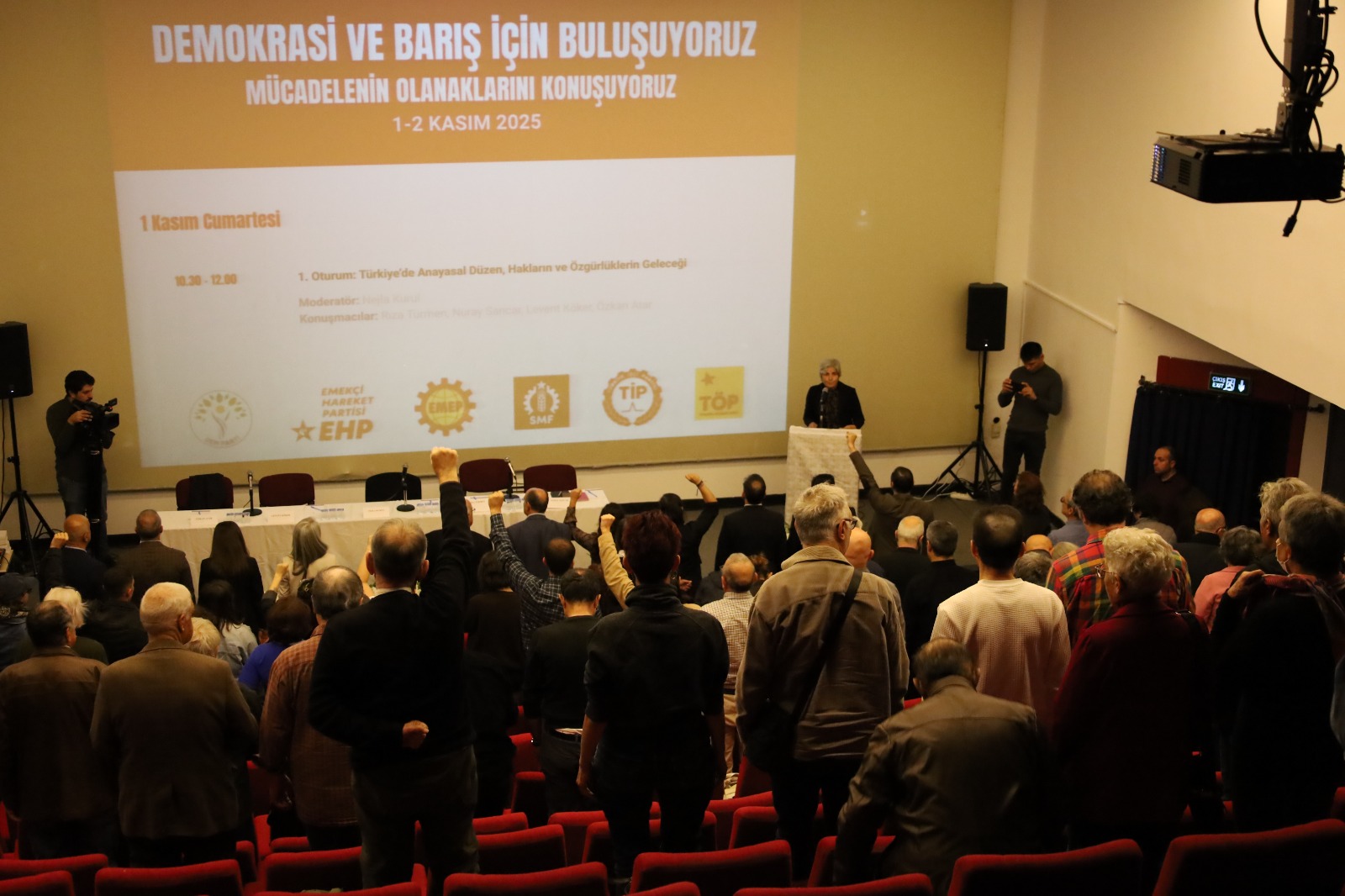 Partiya Wekhevî û Demokrasiyê ya Gelan (DEM Partî), Partiya Tevgera Kedê (EHP), Partiya Kedê (EMEP), Federasyona Meclîsên Sosyalîst (SMF), Partiya Karkêrên Tirkiyeyê (TÎP) û Partiya Civaka Azad (TOP) li Enqereyê Komxebata “Em ji bo demokrasî û aştiyê tên ba hev û derfetên têkoşînê diaxivin” ku 2 rojan bidome li dar xistin. Komxebata roja yekem li Odeya Endezyarên Makîneyê hat lidarxistin. Hevseroka Giştî ya Partiya Herêmên Demokratîk (DBP) Çîgdem Kiliçgun Uçar, Hevserokê Giştî yê Partiya Demokratîk a Gelan (HDP) Cahît Kirkazak û endam û nûnerên partiyên siyasî û saziyên sivîl jî tevlî komxebatê bûn. Komexebat ji bo cangoriyên demokrasî, şoreş û azadiyê jiyana xwe ji dest danê bi deqîqeyeke rêzgirtinê destpê kir.