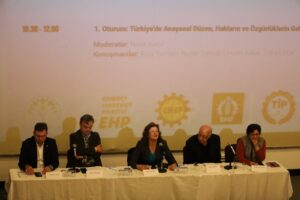 DEM Partî, EHP, EMEP, SMF, TÎP û TOPê li Enqereyê komxebata “Em ji bo demokrasî û aştiyê tên ba hev û derfetên têkoşînê diaxivin” ku wê 2 rojan dom bike li dar bixînin. Di roja yekem a komxebatê de 4 rûniştin hatin li darxistin û komxebat sibe jî wê berdewam bike.