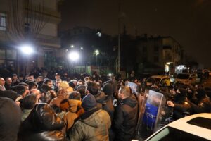 Girseyê demek dirêj di bin dorpêçe de meşale pêxistin û dirûşm berz kirin. Her wiha ciwanan bi gotina stranan bertek nîşanî êrişan dan û piştgiriya berxwedêran kirin. Girse astengiya polîsan nasnekir xwest dorpeçê hilweşîne. Demekê di navbera polîs û girseyê de gengeşî çêbû. Girsê bi dirûşmeyan bertek nîşanî astengiya polîsan dan. Li ser israra girseyê polis neçar man ku dorpeçê rakin. Piştre jî girse bi meş û berzkirina dirûşmeyan derbasî parqa taxê bûn û li wir daxuyanî da.