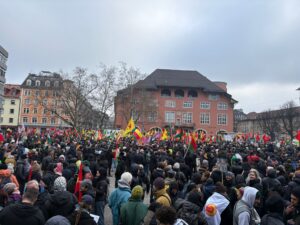 Li Almanyayê ku ji destpêka êrişan heta niha gelê Kurd û dostên wan li ser piyan e, îro jî dakete qadan. Li bajarên Koln, Stuttgard, Freîburg, Frankfurt, Mannheim, Bremen û Hannoverê mitîng û meş hatin lidarxistin. Bi deh hezaran Kurd û dostên wan ên ji bo Rojava kom bûn bi meş herikîn qadên mitîngê. Di meşan de alên YPG û YPJê hatin bilindkirin û pankartên komkujiyên çeteyên HTŞ, DAIŞê şermezad kirin, vekirin. Di mîtîngan de timî diruşmeyên, “Jin jiyan azadî”, “Terorîst Colanî” û “Bijî berxwedana Rojava” hatin berzkirin. Di axaftinên di mitîngan de hatin kirin de bêdengiya welatên Ewropayê ya li hemberî êrişan hate şermezar kirin û têkiliyên wan ên bi HTŞê re hatin protestokirin. Li dijî komploya navneteweyî bang li hemû gelan hate kirin ku berxwedanek kûrevî bê rêxistinkirin. Her wiha ji bo parastina Rojavayê Kurdistanê biryara berdewamkirin û mezinkirina berxwedanê hate dayîn.