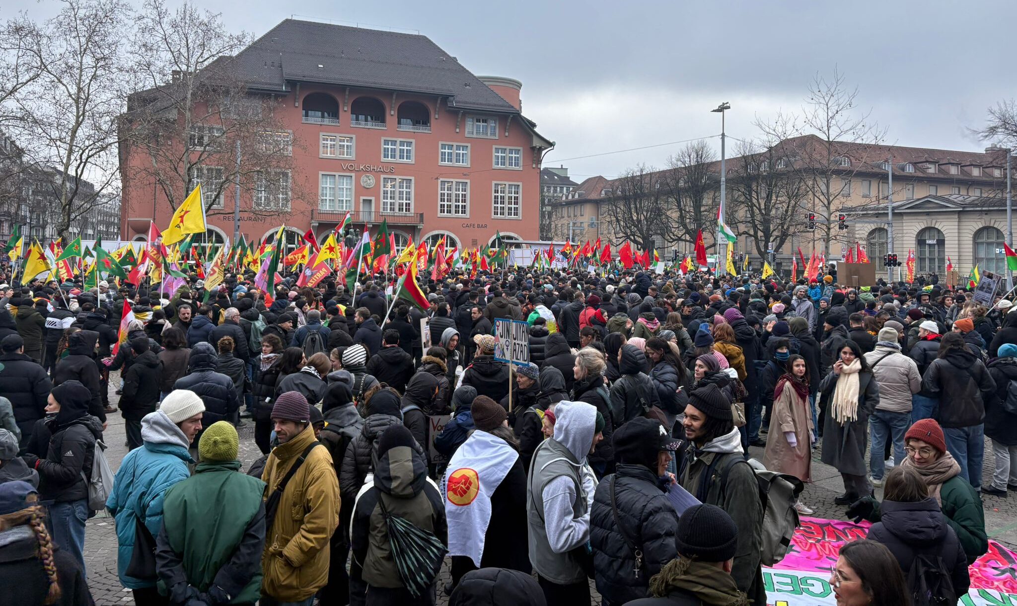 Li bajarê Zurîhê yê Swîsreyê jî bi armanca piştgiriya Rojavayê Kurdistanê û şermezarkirina êrişên çeteyên HTŞ, DAIŞ ên girêdayî Tirkiyê, meş û mitîng hate lidarxistin. Ligel rêxistinên şoreşgerî, sazî û dezgehên Kurd bi deh hezaran Kurdistanî tev li mitîngê bûn. Di meşan û mitîngê de pankartên piştgiriya Rojav dikin hatin vekirin û dowîzên banga berxwedanê dikin, hatin rakirin. Di tevahiya meş û mitîngê de sloganên, “Bijî berxwedana Rojava”, “Yek e yek e, gelê Kurd yek e” û “Rojava Rojhilat e, Kurdistan yek welat e” berz kirin.