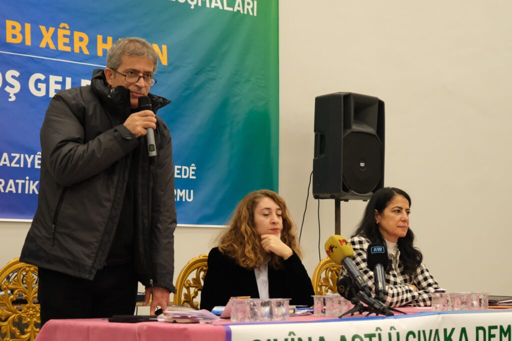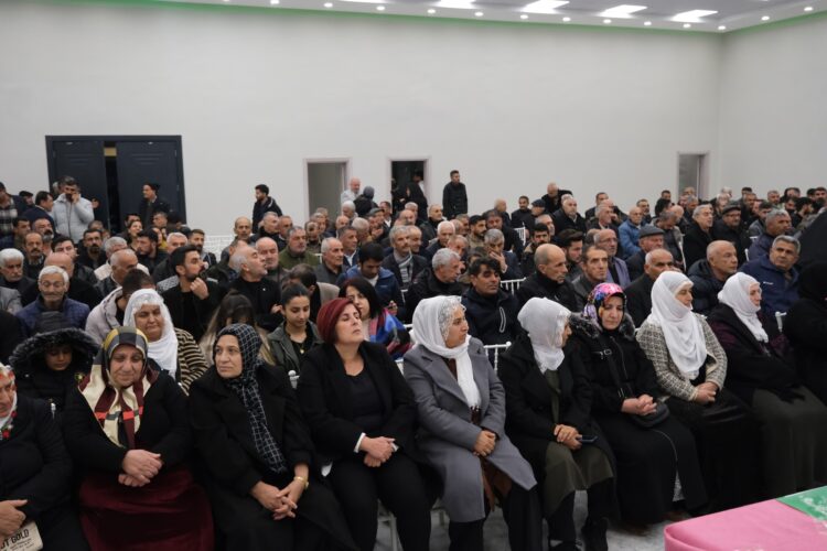 Platforma Saziyên Demokratîk ên Amedê li eywana dawetê ya Sezîkê ya navçeya Farqînê ya Amedê civîna “Aştî û Civaka Demokratîk” li dar xistin. Nûnerên DEM Partiyê, Aktîvîstên TJAyê, nûner û rêveberên DBPê, endamên Dayikên Aştiyê, Komeleya 78an, TUAY-DER, MEBYA-DER, MED-DER, tevî nûnerên rêxistinên siyasî û civaka sivîl beşdarî civîna gel bûn. Di hevdîtinê de bi domdarî diruşmeyên “Bijî Serok Apo” û “Şehîd namirin” berz kirin. Bername ji bo kesên ku di têkoşîna azadiyê de jiyana xwe ji dest dane bi deqeyek rêzgirtinê dest pê kir. Çetîn Arkaş ê ku 33 sal di zindanê de ma, siyasetmedar Ayla Akat Ata û parêzera Buroya Hiqûqê ya Asrinê Raziye Ozturk beşdarî civînê bûn.