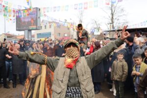 Piştî axaftinan, agirê Newrozê hat pêxistin. Ciwanan bi coşeke mezin xwe bi ser agir re avêtin û pîrozbahî bi gerandina govendê ya li dora agir berdewam kir.