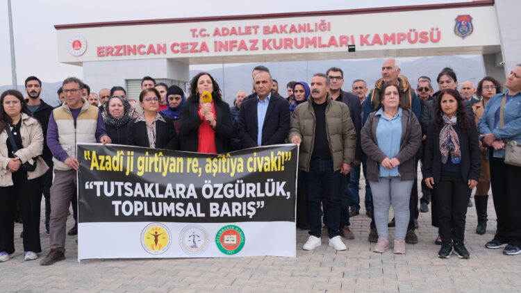 Bi pêşengiya MED TUHAD-FEDê li ber Kampûsa Girtîgeha Erzînganê li dijî neheqiya li girtiyan tê kirin daxuyanî hate dayîn. Parlamentera DEM Partiyê ya Dêrsimê Ayten Kordu, rêveberên DEM Partî û DBPê yên bajarên bajarên Çewlîg, Dersîm, Xarpêt û Erzînganê, rêveberên Saziya Pîr Sûltan Abdalê ya Erzînganê, rêveberên MED-TUHAD FEDê, OHDê, Baroya Amedê û TUHAY-DER a Amedê û gelek malbatên girtiyan tev li daxuyaniyê bûn. Di daxuyaniyê de pankarta “Azadî ji girtiyan re, aştiya civakî” hat vekirin.