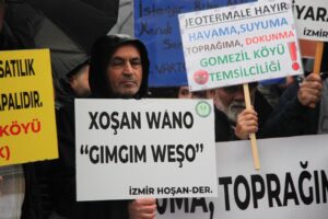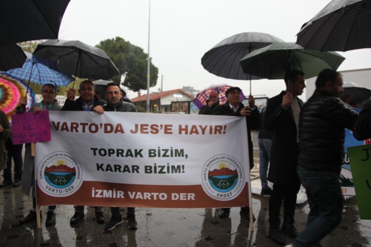 Platforma Ekolojiyê ya Vartoyê û gelek saziyên sivîl ên Îzmîrê li dijî projeya JES a li Gimgimê dengê xwe bilind kirin û diyar kirin ku ew ê ax û baweriya xwe nekin qurbana hirsa sermayeyê.