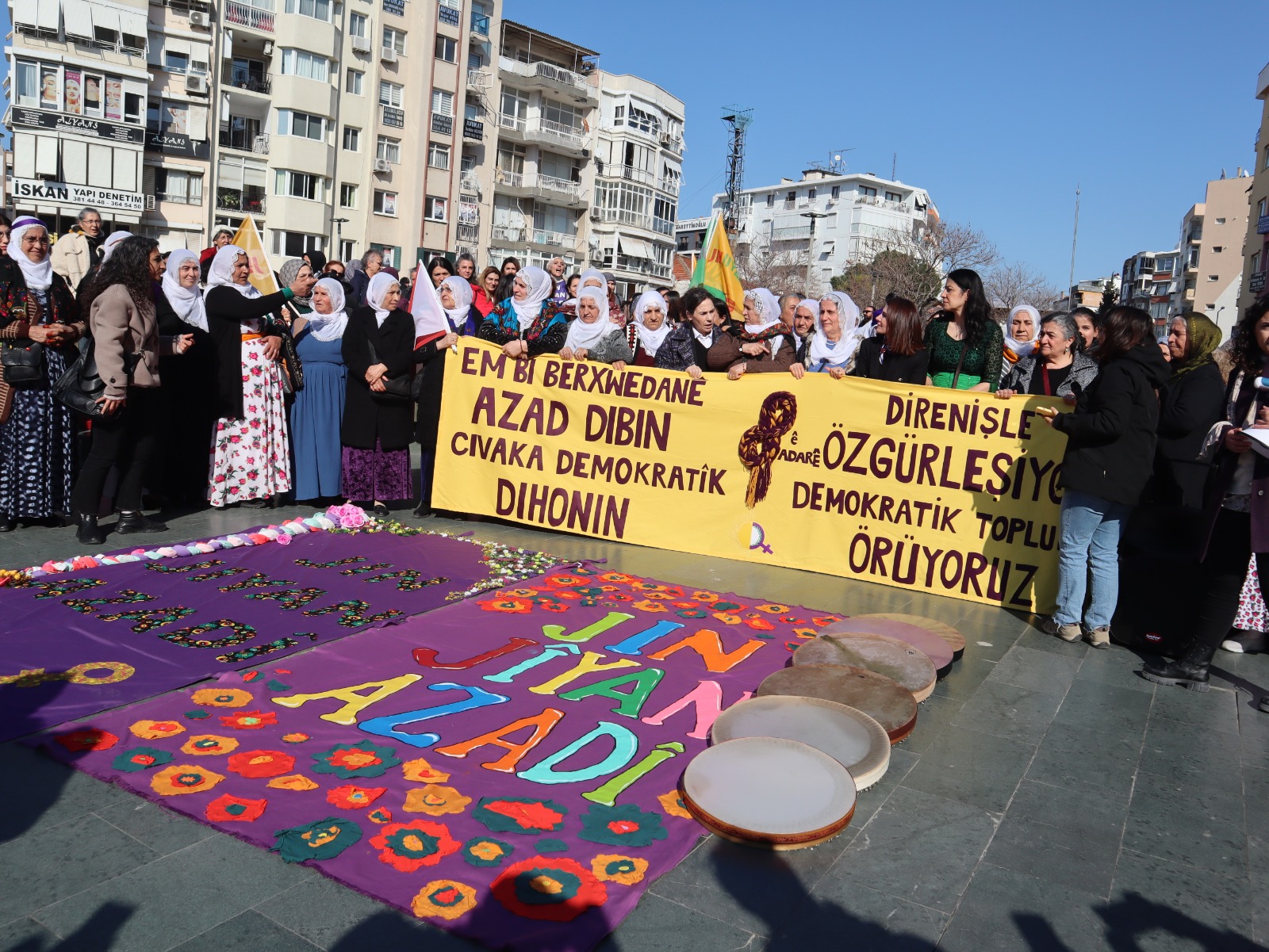 Tevgera Jinên Azad (TJA) li Îzmîrê starta 8ê Adarê Roja Jinan a Cîhanê da. Di çalakiyê de siyasetmedar Ayla Akat Ata axivî û diyar kir ku jin birêxistinker û pêşengên vê pêvajoyê ne û got: “Em ê ligel dayikên xwe, jinên ciwan û karker, bi hev re bibin hêza birêvebir a pêvajoya aşitiyê.”