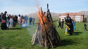 Bi pêşengiya DEM Partî, DBP û TJAyê li navçeya Kercewsê ya Êlihê bi boneya hatina Newrozê pîrozbahî hat lidarxistin. Hevşaredara Êlihê Gulistan Sonuk, hevserokên DEM Partiyê û DBPê yên Êlihê û yên navçeya Kercewsê û gelek welatiyên navçeyê tev li şahiyê bûn. Girseyê bênavber dirûşmeyên “Jin Jiyan Azadî”, “Bijî Serok Apo” û “Bijî Newroz” berz kirin. Girseyê li ber stranan govend gerandin û zarok xwe li ser agirê Newrozê avêtin.