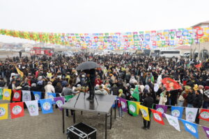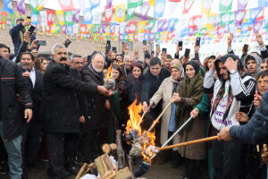 Parlamentera DEM Partiyê Sumeyye Boz di Newroza Kopê de axivî, bal kişand ser giringiya Newroza îsal û got: “Hebûna Kurdan hat naskirin, niha dema azadiya Kurdan û Rêberê Gelê Kurd e.”