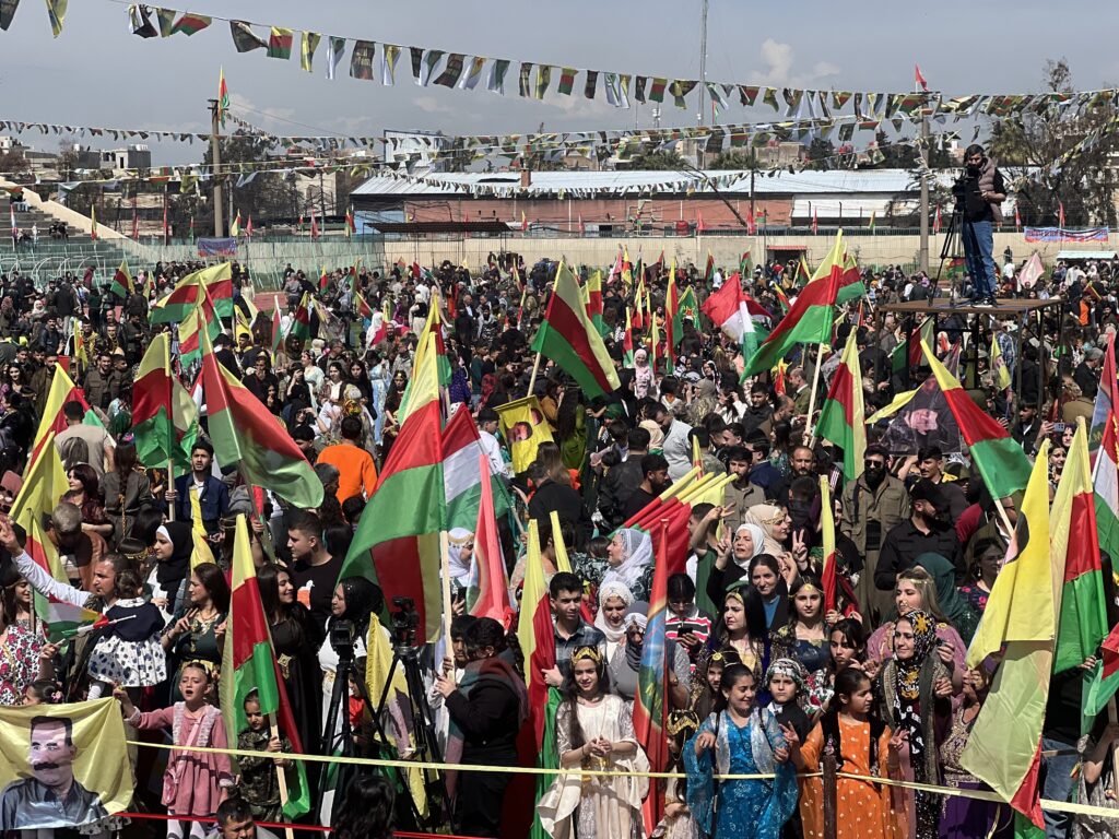 Li Qamişlo, Tirbespiyê û Amûde bi deh hezaran kes bi diruşmeya “Ji Rêber Apo re azadî û Newroza yekitiya demokratîk a Kurd” Newrozê pîroz dikin.
