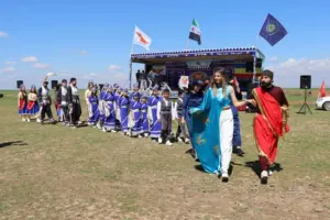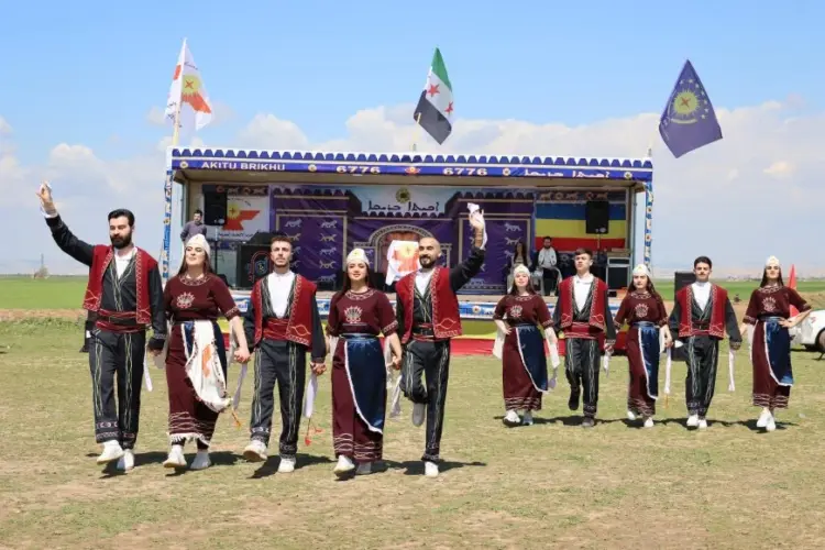 Li gundê Demxiya Mezin ê bajarê Qamişlo pîrozbahî bi deqeyekê rêzgirtinê dest pê kirin. Piştî rêzgirtinê Koma Keşaf a Komeleya Çandî ya Suryan derketin ser dikê. Her wiha pêşangehek ku padîşah û şahbanû wekî sembolên mîrateya Suryanî hatin nîşandan.