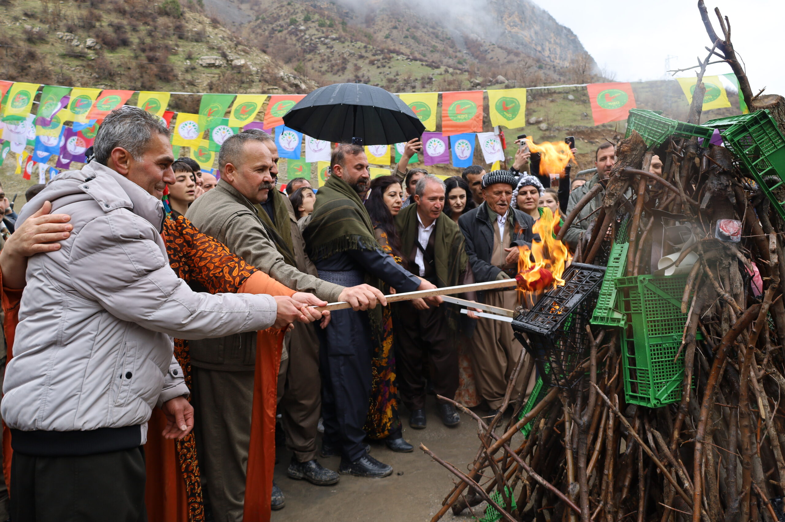 Piştî axaftinan bi dirûşam “Newroz pîroz be” agirê Newrozê hate vêxistin. Pîrozbahî li ber stran û gerandina govendê ve bi dawî bû.