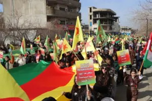 Li bajarên Rojavayê Kurdistanê yên wekî Qamişlo, Dêrik, Dirbêsiyê, Girkê Legê û Amûdê bi armanca piştgiriya berxwedanê û destnîşankirina mafên Kurdî di makezagona nû de meşa li darxistin. Bi deh hezaran kesên tev li meşê bûyî bi yek dengî biryardariya têkşoşînê qêriyan û daxuyandin ku heta maf di makezagonê de bi awayek fermî cih negirin dê ranewestin. Gel pankartên, “Yekbûna me hebûna me ye” vekir û sloganên dilsoziya wan bi HSD, YPG û YPJê re tîne ziman berz kirin.