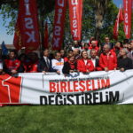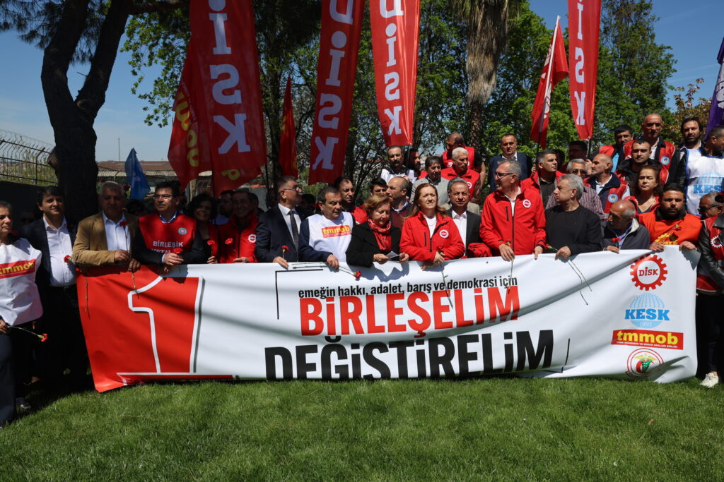 Arzû Çerkezoglu diyar kir ku Qada Taksîmê qada 1ê Gulanê ye û got: “Kesên ku xwestin dengê karkera qut bikin îro hê li ser kar in. Ev desthilat li dijî kedê aliyê kedxwariyê ye. Her ku diçe êrişên xwe zêde dike. Ev dorpêça li Qada Taksîmê hişmendiya AKPê nîşan dide. AKP îro dixwaze bi destê emperyalistan desthilatdariyê di destê xwe de bigire. Lê xwediyên vî welatî hene. Em li vir in, dirûşmeya me jî ‘Bibin yek û biguherînin’ e. Em werin cem hev tu kes nikare li pêşiya me bisekinê.”