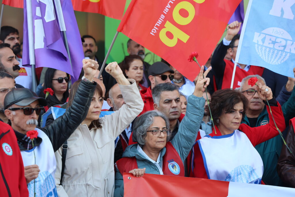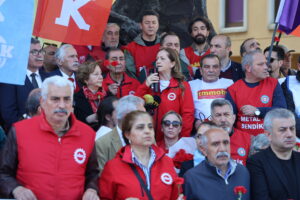 Endam û rêveberên sendîkayan, nûnerên partiyên siyasî ewilî li Evrazê Kazanciyê kom bûn, qurbanî bi bîr anîn û li vir daxuyanî hate dayîn. Ewilî Seroka Giştî ya DÎSKê Arzû Çerkezoglu axivî.