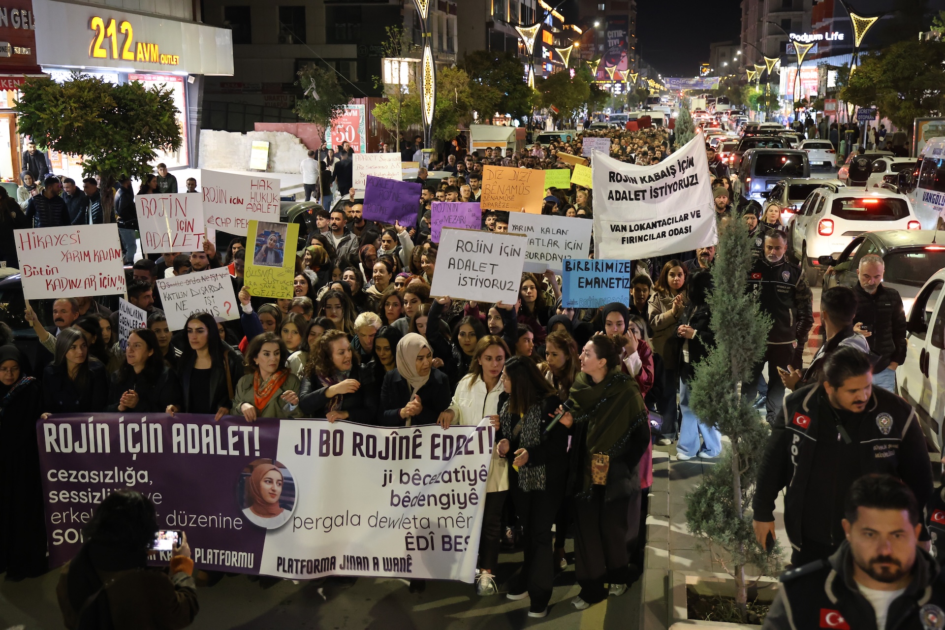 Platforma Jinan a Wanê, têkildarî geşedanên dawî yên di dosyeya Rojîn Kabaîşê de meşeke girseyî li dar xist. Girse li ber Wan AVMê kom bû û bi pankarta “Ji bo Rojinê edalet! Ji bêcezatîyê, bêdengiyê û pergala dewleta mêr re êdî bes e!” û dowîzên “em ji bo Rojînê edaletê dixwazin”, “derengmayîna edaletê, bêedaletî ye”, “em edaletê dixwazin” û gelek dowîzên din heta Qada Bajêr meşiyan. Girseyê, dirûşmeyên “Jin jiyan azadî”, “mêr lêdixe, dewlet diparêze” û “rektor îstîfa” berz kirin û bertek nîşanî îhmalkariya rêveberiya zanîngehê da. Hevşaredara Bajarê Mezin a Wanê Neslîhan Şedal, Parlamentera Partiya Wekhevî û Demokrasiyê ya Gelan (DEM Partî) ya Wanê Gulderen Varli, endamên platformê û gelek jin beşdarî meşê bûn.