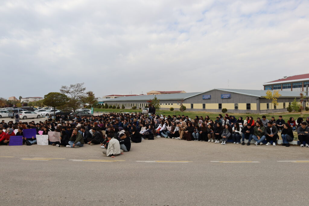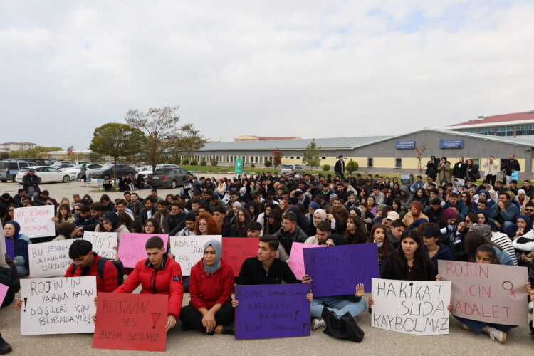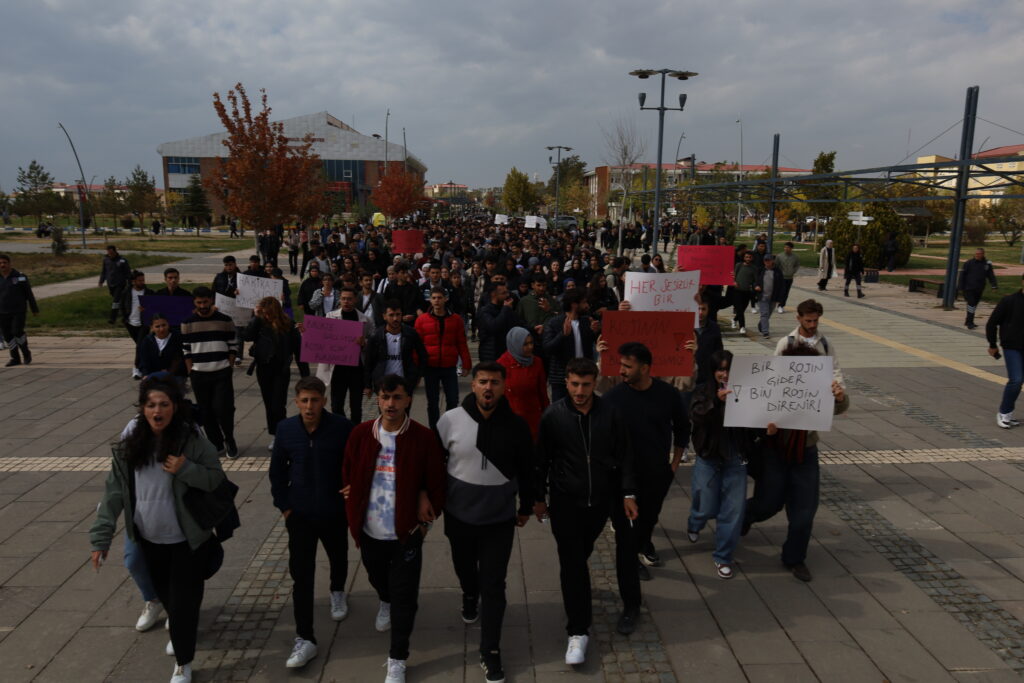 Dû re bi pêşengiya Platforma Jinan a Wanê li ber ATKê ya di nava zanîngehê de ye, daxuyaniyek hat dayîn. Şagirtên li ber avahiya rektor kombibûn bi meşeke girseyî tev li daxuyaniyê platformê bûn. Di daxuyaniyê de dowîzên weke “Ji bo rojîn edalet”, “Rojînê xwe ne kuştiye, faîlan bibînin û bidarizînin” û “Ji bo Rojînê bê deng nemîne” hatin rakirin.