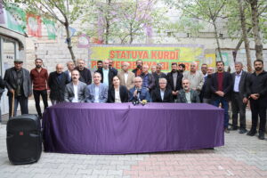 Saziyên Zimanê Kurdî û Platforma Saziyên Demokratîk, têkildarî “Komxebata Stratejî û Polîtîkayên Têkoşîna Ji Bo Zimanê Kurdî” ku dê di 15 û 16ê Cotmehê de li Eywana Dawetê ya Çiragan a li navçeya Rêya Armûşê ya Wanê li dar bixe, li baxçeyê DEM Partiyê daxuyanî dan. Di daxuyaniyê de pankarta “Statuya Kurdî perwerdehiya bi Kurdî” hat daliqandin. Hevşaredarê Bajarê Mezin ê Wanê Abdullah Zeydan, nûnerên saziyên demokratîk, rêveberên DEM Partî û DBPê û gelek kes tev li daxuyaniyê bûn.