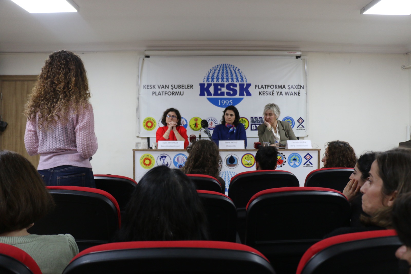 Moderatoriya panelê li ser navê KESKê Sema Aktaşê kir û Akademîsyenên Aştiyê Yasemîn Ozgun û Elçîn Aktoprak wekî panelîst cih girtin.
