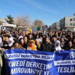 Li ser banga Platforma Saziyên Demokratîk ji 7 salî heta 70ê salî, bi hezaran welatî ji bo piştgiriya berxwedana Rojava meş li dar xistin.