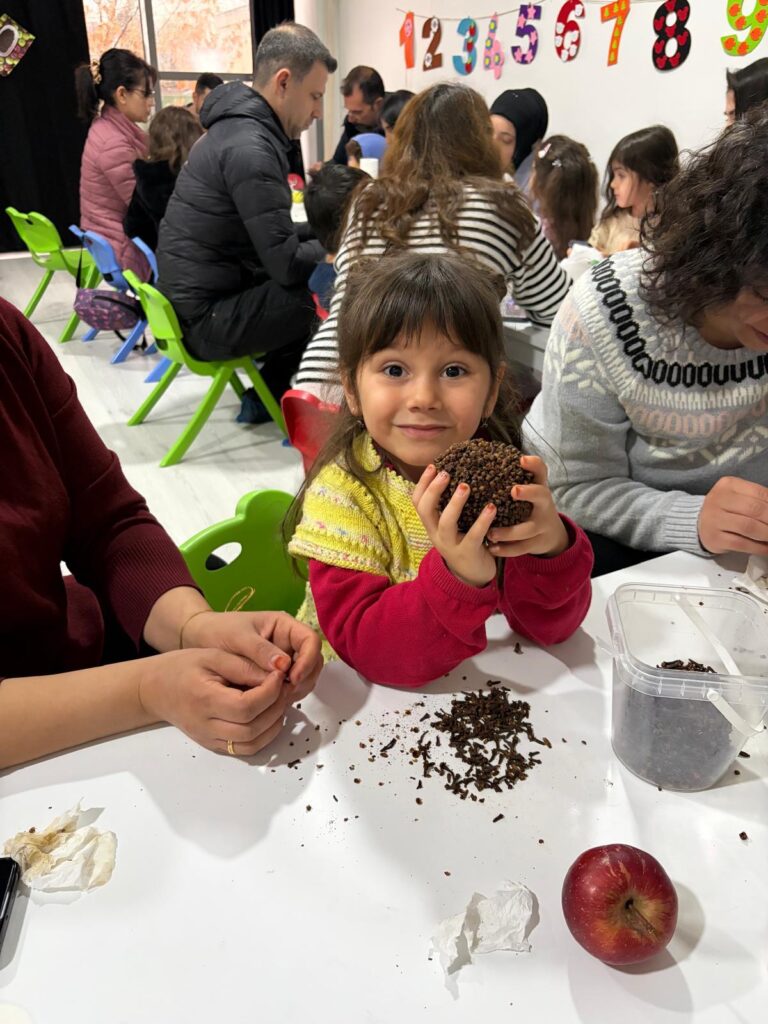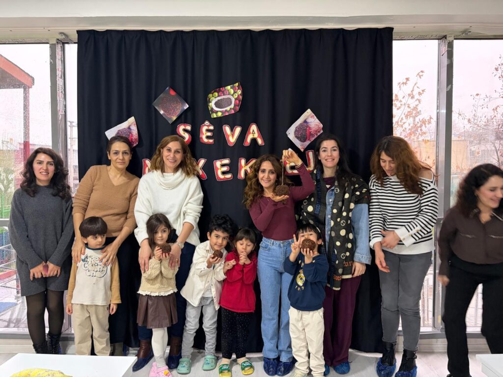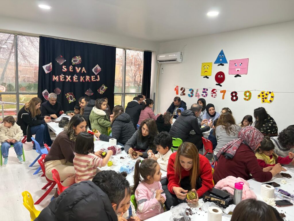 Di çalakiyê de, zarokên kreşê di bin rêberiya mamosteyên xwe de bi malbatên xwe re sêvan bi qûrnefîlan xemilandin. Kevneşopiya bi sedan sal in di çanda Kurdî de wek diyariyeke evîndariyê tê naskirin, bi awayekî xweş hate pêkanîn. Zarok bi destên xwe sêvên sor bi qûrnefîlan xemilandin. Xebat armanc dike ku zarok di mijarên jêhatîbûnên destan, nirxên çandî ve girêdan, hevgirtin, dilovanî û aştiyê de pêş bikevin.