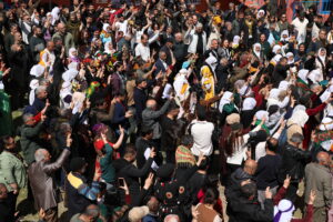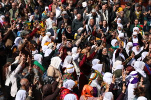 Hezar kes ji bo pîrozbahiya rojbûna Rêberê Gelê Kurd Abdullah Ocalan li navçeya Xelfetiyê derbasî gundê Amara bûn. Bi gihiştina girseyê xaniyê Rêberê Gelê Kurd Abdullah Ocalan jê dayikbûyê pîrozbahiya rojbûnê destpêkir.