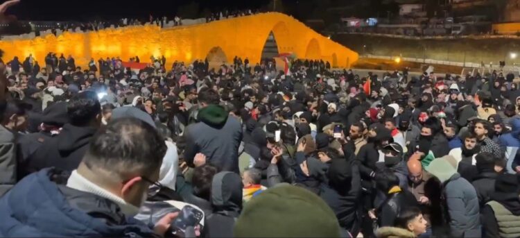 Li Zaxoyê bi deh hezaran kes ji bo piştgiriya Rojavayê Kurdistanê kom bû û bi sloganan banga mezinkirina têkoşînê û parastina destkeftiyan kir.