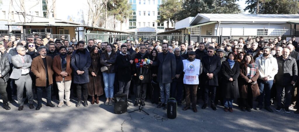 Baroya Amedê, Komeleya Hiqûqnasên ji bo Azadiyê (OHD) û Komeleya Mafên Mirovan (ÎHD) a Amedê li pêşiya Edliyeya Amedê daxuyanî dan. Di daxuyanîyê de gelek nûnerên sazîyên sivîl, parastvanên mafên mirovan û parêzer amade bûn. Daxuyaniya Tirkî Serokê Baroya Amedê Abdulkadir Gûleç xwend.