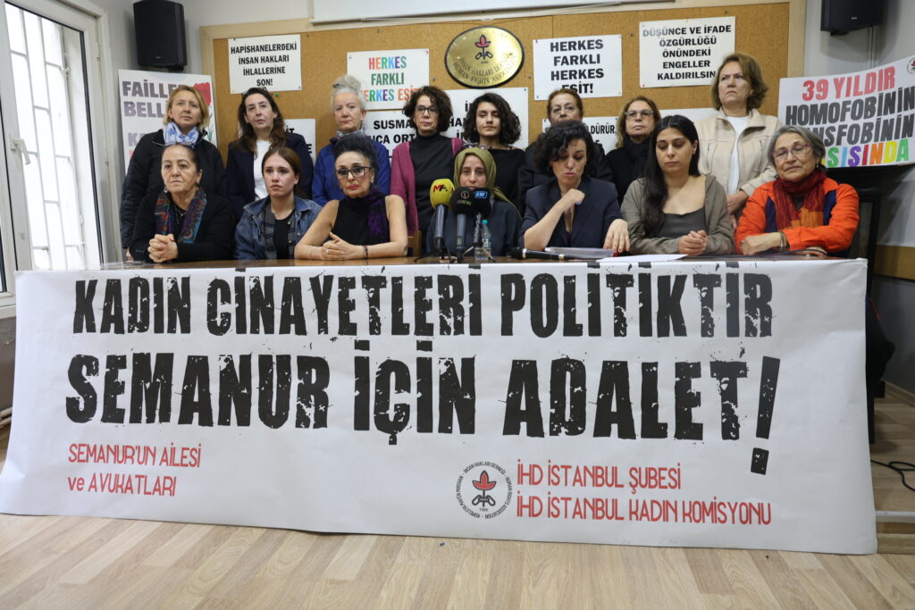 Di 22yê Adarê de li navçeya Fatîh a Stenbolê Semanûr Aydin ji aliyê mêrê bi navê Hasan Algul ve hatibû kuştin. Şaxa Komaleya Mafê Mirovan (ÎHD) û malbata Aydin bi daxwaza edaletê li avahiya Şaxa ÎHDa Stenbolê ya Beyoglûyê daxuyanî da. Rêveberên ÎHDê, Komaleya Dema Jinan û gelek jin tev li daxuyaniyê bûn. Li eywanê pankarta “Kuştina jinan polîtîk e, ji bo Semanûr edalet” hat vekirin.