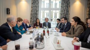 Mazlum Ebdî û Îlham Ehmed li odeyek konferansê bi endamên Kongreya Amerîkaya re civiyan û hat zanîn ku li ser geşedanên li Rojava û Sûriyeyê axaftin û nîqaşan kirin e. Di civînê de Wezîrê Karên Derve yê Sûriyeyê Muhammed Hesen Şeybanî jî amade bû.