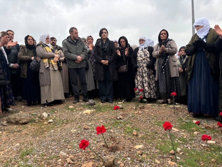 Piştî ku girse gihîşt goristanê ji bo kesên ku di têkoşîna azadiya Kurd de jiyana xwe ji dest dane deqeyek rêz girt. Dûre girseyê serdana goran kir û goran bi qurnefîlan xemiland.