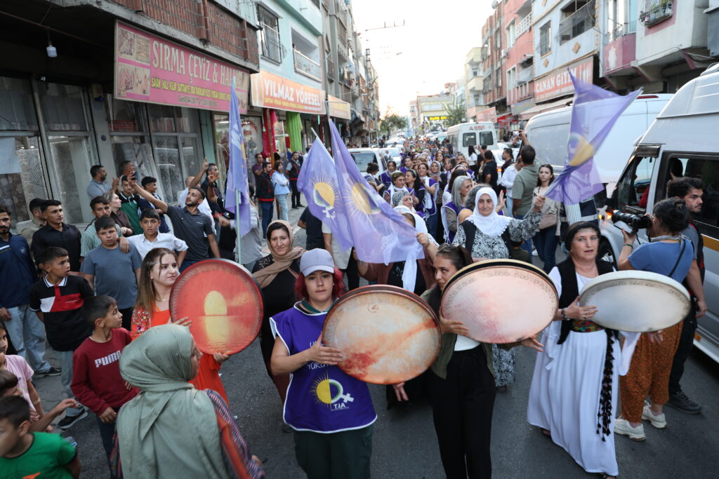 Hulya Alokmen bi lêv kir ku meşa 50 sal berê dest pê kir gihişt milyonan û wiha domand: “Niha jin û ciwan dimeşin. Rêberê gelê Kurd birêz Abdullah Ocalan di 27 sibatê de rêya aştîwekhevî û demokrasiyê danî pêşiya me. Em jin heta ku aştiyeke bi rûmet pêk were em ê meşaxwe bidomînin. Heta ku birêz Ocalan azad nebe jin azad nabin. Em bajar bi bajar diçin. Daxwaza me ya sereke azadiya birêz Ocalan e. Rêya me ya aştiyê vekirî be.”