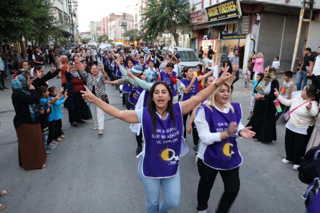 Meşa ku Tevgera Jinên Azad (TJA) bi dirûşma “Em bi hêviyêber bi azadiyê ve dimeşin” di 1ê Cotmehê de ji Amedê ber bi Enqereyê ve da destpêkirin di roja sêyemîn de berdewam dike. Jinên ku di saetên sere sibê de berê xwe dan gundê Amara yê navçeya Xelfetiyê ku RêberêGelê Kurd Abdullah Ocalan lê ji dayik bû û li wir daxuyanî dan. Dûre jin ber bi navçeyaBêrecûkê ve bi rê ketin. Jinên ku bi meşê ketin navçeyê ji aliyê endam û rêveberên DEM Partiyê û welatiyan ve hatin pêşwazîkirin. Jin li kêleka Çemê Firatê meşa xwe domandin û dimeşê de dirûşm berzkirin û stran gotin. Jinên ku meşa xwe ya li Rihayê bi dawî kirin berêxwe dan Dîlokê. Jinên ku bidirûşm, stran û tilîliyan heta qadeke Taxa Vatanê meşiyan ji aliyêhezar kesan ve bi awayekî bicoş hatin pêşwazîkirin. Dîlokiyan jinên meşvan bi pankarta “Daxwazên we daxwazên me ne. Hûn bi xêr hatin pêşwazî kirin.” Meşvanan kesên ewpêşwazî kirin yek bi yek hembêz kirin û derbasî qadê bûn.