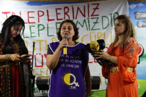 Dû re aktîvîsta TJAyê Hulya Alokmen spasiyên xwe pêşkeşî Dîlokiyan kir û bal kişand ser şehadeta Heqî Karer. Hulya Alokmen got ku “Em şehîdên xwe bi bîr tînin” û wiha got: “Ewrêberê têkoşîna me ne.”