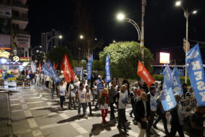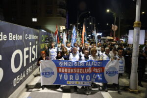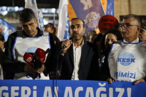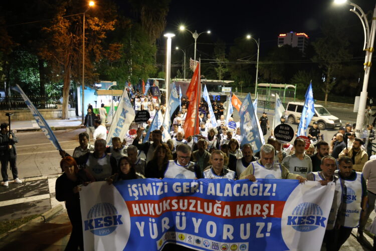 Meşa “Em ê karê xwe paşve bistînin” ya KESKê gihişt Rihayê. Hevseroka KESKê Ayfer Kocak diyar kir ku ji ber wan dengê aştiyê bilind kir, hatin ixrackirin.
