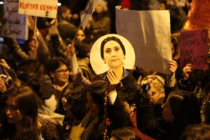 Li Stenbolê bi hezaran jin ji bo Meşa Şevê ya Feminîst hatin gel hev. Polîsan rêyan girt lê jin meşiyan û li qadê dirûşmeya “Jin Jiyan Azadî” olan da.