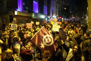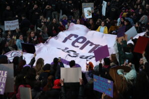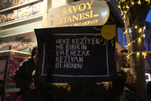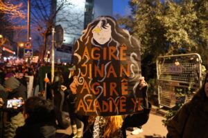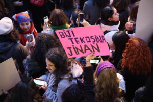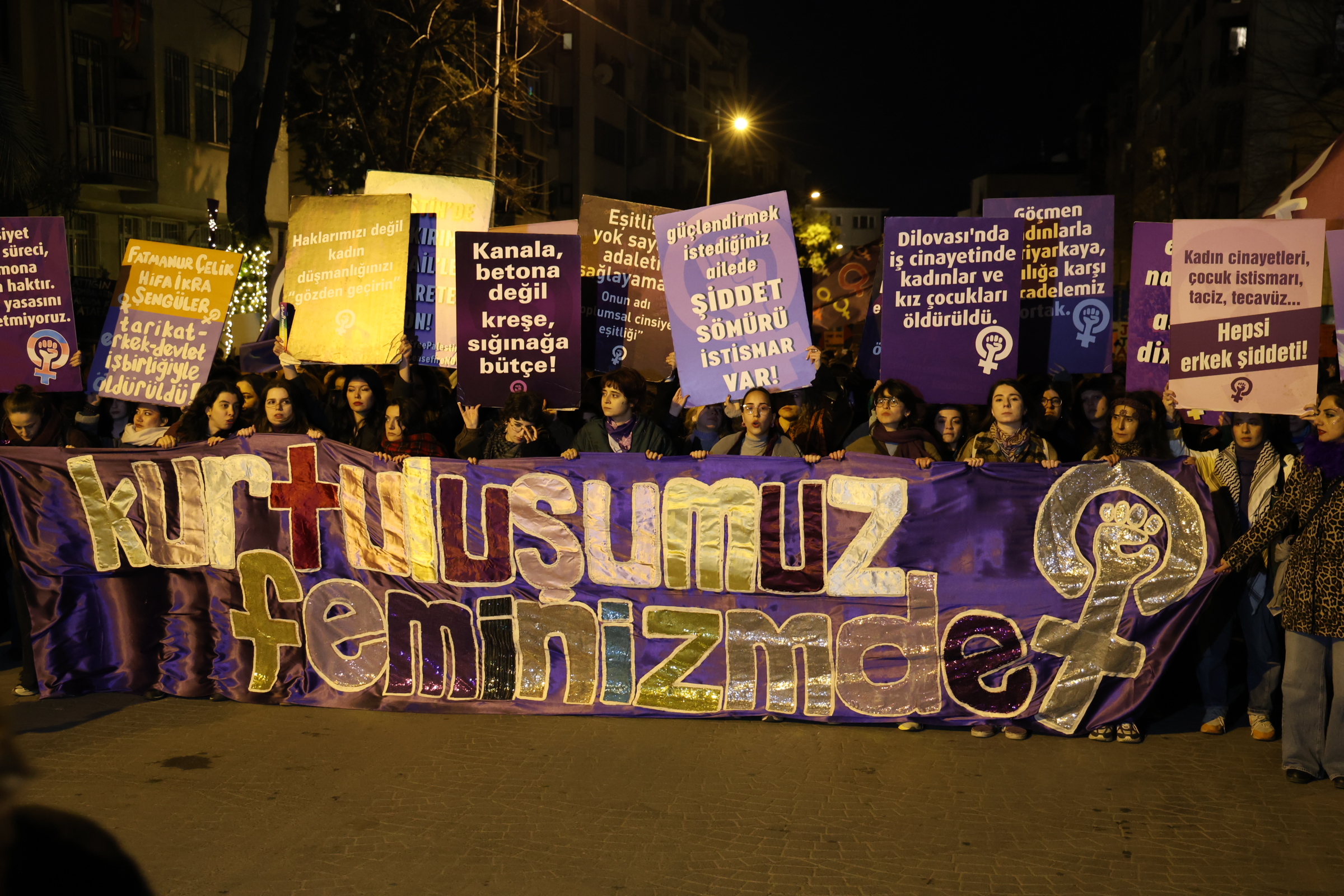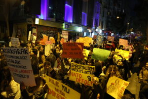 Li Stenbolê bi hezaran jin ji bo Meşa Şevê ya Feminîst hatin gel hev. Polîsan rêyan girt lê jin meşiyan û li qadê dirûşmeya “Jin Jiyan Azadî” olan da.