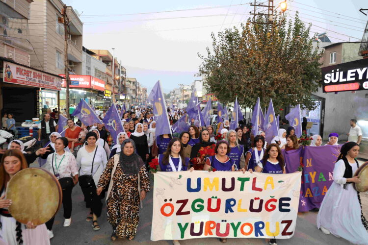 Meşa ku Tevgera Jinên Azad (TJA) bi dirûşma “Em bi hêviyê ber bi azadiyê ve dimeşin” di 1ê Cotmehê de ji Amedê ber bi Enqereyê ve da destpêkirin di roja çaremîn de berdewam dike. Di roja çaremîn de jin li Dîlokê derketibûn û gihiştin Edeneyê. Jinên ku bi meşê ketin Edeneyê ji aliyê rêxistina DEM Partiyê ya Edeneyê, dayikên aştiyê û gelek kes ve bi kulîlkan û girseyî hatin pêşwazîkirin. Di pêşwazî kirinê de dirûşmên “Bijî Serok Apo” û “Jin Jiyan Azadî” hat berzkirin. Piştî pêşwazîkirinê girsê pêşiya Kebapçî Şakîr heta Xaçiya Karasûyê ya taxa Dagliogluyê ya navçeya Seyhanê meşiyan. Piştî girse gihişt qadê dest bi govendê kirin û qadê wêneyên rêberê gelê kurd Abdullah Ocalan hat vekirin.