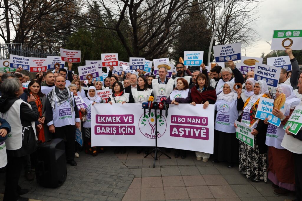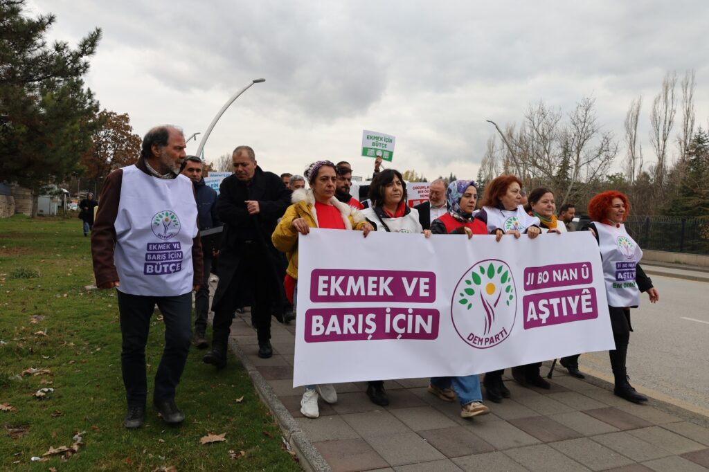 Meşa “Ji bo nan û aştiyê budçe” ku ji aliyê DEM Partiyê ve li 4 navendan hatibû destpêkirin, piştî 2 rojan meşvanên ku Hevserokên Giştî yên DEM Partiyê Tulay Hatîmogullari û Tuncer Bakirhan jî di nav de daxwazên xwe li ber meclisê anîn ziman.