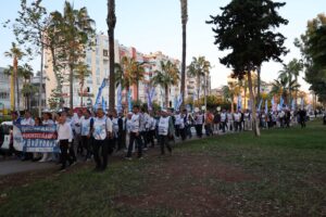 Meşa KESKê ya bi dirûşma “Em ê karê xwe bi paş ve bistînin” di roja seyemîn de gihîşt Mêrsînê. Hevseroka Giştî ya KESKê Ayfer Kocak diyar kir ku ji bo xwîna tu ciwanan nekeve erde, zimanê zikmakî bibe zimanê perwerdehiyê ew li ber xwe didin.