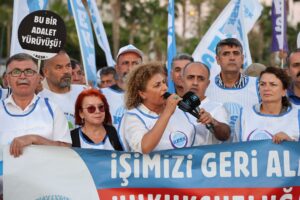 Mustafa Ozbay anî ziman ku desthilatdara AKPê û MHPê di roja 1ê Îlonê aştiyê ya cîhanê dest bi derxistina KHKê kir û wiha axivî: “Bi sed hezaran kes ji karê xwe hatin derxistin. Li dijî bêhiqûqiyê çi bibe bila bibe em ê dengê xwe bilind bikin. Em ê her dem berxwe bidin.”